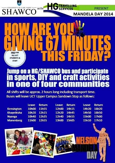 Join SHAWCO on Mandela Day to give back to the different Cape Town communities.